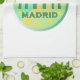 Madrid is the capital city of Spain. Also visible in the design is the silhouette of Alcala Gate ("Puerta de Alcalá"), one of the city's landmarks.