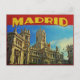 This wonderful vintage look scene features buildings in Madrid, Spain with the city name across the top in yellow on a red background.