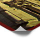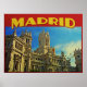 This wonderful vintage look scene features buildings in Madrid, Spain with the city name across the top in yellow on a red background.