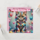 A dear little kitten celebrating Mae's birthday. The Greeting on the card is Happy Birthday Mae". On the back of the card is a small version of the same kitten, with plenty of room to write a message. Made with the assistance of AI Bing (CoPilot).