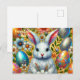 Here is a cute Easter Greeting postcard featuring a cute bunny, Easter eggs, and flowers. It was created using a computer-generated AI program called Bing and my imagination. It is a reasonably priced card for greeting anyone, particularly children, on Easter Day.