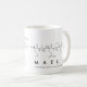 Maelie spelled out in amino acids as M A E L I E (Methionine Alanine Glutamic acid Leucine Isoleucine Glutamic acid) on a mug for the scientist in you.
