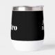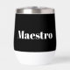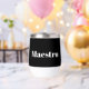 One side of this design features the word 'Maestro', while the other side can be personalized with a name. Simple white on black text creates a minimalist look. An ideal novelty gift for a conductor, performer or music teacher.