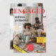 a fun magazine cover style engagement announcement , with 4 photos, and bold type in red yellow, here s the scoop, surprise engagement announcement!