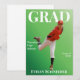 In a straight off the press fashion, announce your graduate's achievement with a magazine style announcement card. Use Zazzle's BG Remover, your own photo editing software, or smart phone to remove the background from the photo. Add the graduate's class year, school, and name. If desired choose the "Add Text" option to add a quote, plans, etc.. The green background goes from light to dark, providing more emphasis for the student's picture.