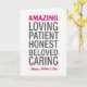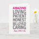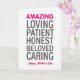 Designed with a simple, centered layout on a bright white background, this card lets the words do all the talking. At the very top, the word “AMAZING” sits in lively magenta, drawing the eye right away like an affectionate shout of admiration ❤️. Below it, a vertical list of qualities—“LOVING,” “PATIENT,” “HONEST,” “BELOVED,” and “CARING”—appears in dark charcoal, giving each word steady weight and a calm, supportive tone. The contrast between the magenta and charcoal feels like a warm embrace paired with dependable strength, as if someone is being seen and cherished in the same breath. Generous white space surrounds the text, keeping the focus on each trait and letting the message feel open and uncluttered. Near the bottom, “Happy Mother’s Day” returns in matching magenta in a smooth, flowing style, tying the top and bottom together with a gentle, affectionate rhythm 🌼. The text stays centered from top to bottom, with the magenta lines acting as bright bookends around the charcoal list. The final detail is the magenta “Happy Mother’s Day” placed at the bottom center beneath the charcoal words.