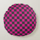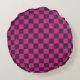 Magenta and smoke checkerboard pattern round pillow