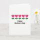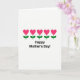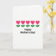 Designed with five evenly spaced flower-like shapes across the upper half, this card shows magenta heart-shaped blooms that lean toward each other like close friends sharing a quiet moment ❤️. Each bloom sits on a slim green stem with two matching deep-green leaves, keeping the look simple and affectionate. The wide white background leaves plenty of breathing room, making the hearts feel like they’re floating in a calm, open space. Beneath the row of stems, a short message appears centered in plain black lettering, easy to read at a glance. The strong contrast between the black text, bright magenta hearts, and green stems gives the design a crisp, modern feel without adding extra clutter. The careful spacing and straight alignment make the flowers feel like a small group standing together, connected and supportive 🌼. The message sits in the lower half of the card, directly under the flowers, with the five heart blooms forming a neat line above it.