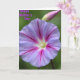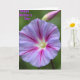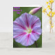 This design shows a close-up of a single trumpet-shaped flower filling most of the frame, its wide petals shifting from soft lavender into deeper magenta for a romantic, tender look ❤️. Near the top, a slim unopened bud leans in like a quiet companion, adding a gentle sense of closeness to the scene. The background fades into blurry green leaves and stems, keeping the focus on the bloom while still suggesting a calm garden setting. Light falls softly across the petals, making the edges look slightly rippled and letting the surface appear lightly translucent. From a pale, pearly center, bright fuchsia veins radiate outward and thin into finer reddish lines, like delicate pathways guiding the eye. In the upper left area, the words “Happy Mother’s Day” appear in purple lettering, small enough to feel tucked into the image rather than overpowering it 🌼. The flower’s center is nearly white, with the strongest color concentrated along the radiating veins and the petal tips.