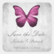 Elegant and simple Wedding Save the Date Stickers featuring a Magenta Butterfly against a gray grunge background. This design is a unique choice for announcing a modern wedding. Easy to customize with your wedding details. Click "Customize It" to find more personalization options.