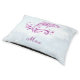 LOVE, love, LOVE this doggy pillow/bed. I purchased this dog bed a few years ago, in a different design, so I know it is a quality dog bed. The cover zips off for easy laundering and it doesn't shrink or pill after multiple machine washings. I use it at the end of the chaise section of my sofa as a bed for my dog and to help keep the sofa clean where she lays. I uploaded this photo design with her name and a picture of her sleeping on another pillow on our bed, with waves added in because I just know she's dreaming of being on the beach. When I received this new one, I replaced the old one on the sofa and Sara immediately laid down on it and knew it was for her. If you have a larger dog (Sara is about 25lbs) you'll want to order the larger size. Zazzle's printing and colors are always perfect. I'm a photographer, and I know how I expect the colors to come out, and they always do with Zazzle.