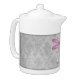 Enjoy your tea with a Magenta Dragonfly Damask Personalized Teapot. Teapot design features a colorful dragonfly against an elegant vintage gray damask pattern. Additional gift items available with this design as well as a variety of colors.