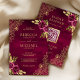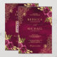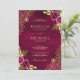 Magenta Fuchsia Floral Gold Lace QR Code Wedding Invitation