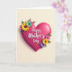 This card features a plush-looking, three-dimensional magenta heart centered on a muted cream background, glowing softly as if lit from above. Clusters of stylized flowers and leafy sprigs hug the heart’s upper-left curve and lower-right edge, like a gentle embrace that hints at closeness and affection ❤️. The blossoms mix bright yellow, cool teal, delicate pink, and soft purple petals, each with a deeper-toned center that adds depth. Deep green leaves weave between the flowers, giving the arrangement a fresh, garden-like feel 🌼. Across the middle of the heart, a short message appears in flowing white lettering, standing out clearly against the rich magenta. The text sits centered and slightly curved to follow the heart’s shape, with even spacing that keeps it easy to read. Soft shading and faint shadows along the heart’s edges and under the floral clusters make the contours look rounded and touchable. The flowers remain concentrated on the upper-left and lower-right corners, leaving the heart’s center mostly open for the white message.