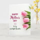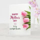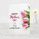 This card features a balanced layout on a bright white background, pairing a loving message with fresh floral details ❤️. Near the center, the words “HAPPY Mother’s DAY” appear in magenta, with “Mother’s” written in flowing connected lettering that feels soft and affectionate. Just below, a small magenta heart sits like a quiet sign of closeness between loved ones. Under the heart, “To my wonderful Grandma,” is placed in gentle green connected lettering, adding a family-focused note without crowding the space. On the right side, three closed pink blossoms are stacked vertically, like a tidy bouquet held close. Deep green leaves frame each bud, their crisp shapes contrasting with the smooth petals and giving the design a calm, caring rhythm 🌼. The three pink buds form a neat column along the right edge, each nestled into dark green leaves against the white backdrop.