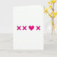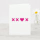 This card shows a simple “X X ❤️ X” design lined up across the center on a plain white background. The two X’s on the left, the heart in the middle, and the final X on the right are all the same bright magenta color. The shapes look smooth and evenly spaced, so your eyes go straight to the heart as the main focus. There aren’t any characters or extra objects, just that familiar “XOXO” idea shown in a straightforward way. The text on the card is made of those large magenta letters and the heart symbol, with no other words added. It feels meaningful because it says “hugs and kisses” without needing a long message, which can be perfect when you want to keep things simple but real 🥰. It also works for romance or close friendship, since the heart in the center makes the affection feel clear and sincere ❤️. Share it to help pass along sweet Valentine’s Day feelings to someone you care about.