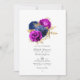 Magenta Navy and Gold Floral Wedding QR Code Rsvp Invitation