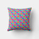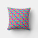 A chic Throw Pillow or Cushion, with a traditional Islamic pattern in bright pink, orange, turquoise blue and light green, outlined in white; from the Posh & Painterly 'Islamic' collection.