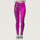 Cute white paw print side stripe magenta leggings. Purple diagonal stripe leggings with side stripes made of white paw prints going up one leg and down the other. Fun leggings for anyone who loves animals, especially dog and cat owners and fans of pets with paws. Modern chic design for a trendy runner, workout enthusiast and everyone who loves animals and enjoys looking good and feeling comfy and cozy.