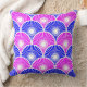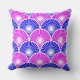 Magenta Pink Blue Chinese Semi Circle Wave pattern Throw Pillow