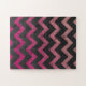 Magenta pink red ombre dark gray chevron pattern jigsaw puzzle
