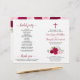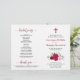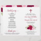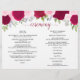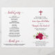 This beautiful program is designed for a Catholic ceremony. It features a rustic boho chic design with a hand painted watercolor roses in shades of hot pink, magenta, and blush. There is a crucifix or cross, with elegant script calligraphy for the names of the couples and titles. The inside has extended space for all of the details on the ceremony, while the back has information on the bridal party along with a short thank you note. Beautiful way to welcome your guests and make it easy for them to follow along with the ceremony.