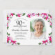 Magenta Pink White Photo 90th Birthday Dinner Invitation