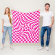 Magenta Pink & White Warped Chic Checkered Pattern Fleece Blanket