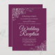 These affordable, budget friendly wedding reception invitations are the perfect choice for class, style, and beauty on a budget. Designed for guests who are invited to the reception but not the ceremony, they feature a cassis purple, magenta, or berry colored background with ornate silver faux foil frills in the corners. The typography includes fancy pale gray script lettering for a style that is at once simple and elegant. Wonderful way to invite your friends and family to share in your joy on your special day without breaking the bank.
