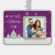 Celebrate a special holiday moment with this Magenta Christmas Tree Framed Photo Ornament, featuring elegant Christmas trees as snowy pines surrounded by delicate white snowflakes in a peaceful winter scene. The charming festive typography highlights your favorite photo, creating a timeless holiday keepsake that beautifully complements your Christmas decor. Perfect for commemorating our first Christmas or any cherished holiday memory.