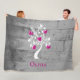 Keep warm on chilly fall and winter nights with a Magenta Tree of Hearts Personalized Fleece Blanket. Blanket design features a a blooming hearts tree against a gray wooden background with an area to personalize with your name. Additional gift items available with this design as well as a variety of colors.