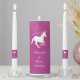 Personalize special candles for your wedding ceremony with a set of Magenta Unicorn Unity Candle Set. Candle design features a starry background with a unicorn adorned with stars. Personalize with the groom and bride's names along with the wedding date, and taper candles with surnames. Additional wedding stationery and gifts available with this design as well. Need help with customization? Please contact me and I will work out the wording and details to fit this design to your satisfaction.