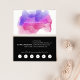 Chic watercolor business cards feature your name or company name layered on a blooming inkblot illustration in bright, colorful shades of fuchsia pink, magenta and violet. Add your full contact information to the back in white on black. Includes your custom loyalty offer (shown with "enjoy 20% off any service after five visits"), and six punchouts.