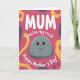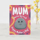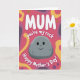 This card features a soft charcoal-gray, pebble-like character sitting in the lower middle, with tiny dot eyes and a small curved smile that feels warmly loyal ❤️. A few speckles across its surface add texture, like a steady friend who’s been through a lot and still stays close. The background is a strong magenta field, setting an affectionate mood without needing extra detail. Curving, organic shapes in sunny yellow, muted purple, and deep reddish-brown drift around the scene, as if gently wrapping the character in a caring embrace 🌼. At the very top, the word “MUM” appears in large white letters, standing out clearly against the magenta. Just below, “you’re my rock” is written in white and curves above the little stone character, while “Happy Mother’s Day!” arches beneath it in matching white lettering with a faint shadow. The flowing shapes frame the text and character, with yellow swirls near the upper edges and darker curves sweeping along the sides.