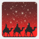 The Magi on their way to Bethlehem is shown on this square holiday sticker, ready to decorate your packages in style.