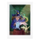 If you love magic, you'll love this fun Magic Act painting, Magic abounds in this whimsical piece of art digitally painted by our talented children's illustrator, Traci Van Wagoner, featuring a girl magician wearing a blue robe and a blue hat with stars and moons, pulling three multi color rabbits out of a black hat with her magic wand.