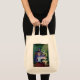 The printing came out very well, better than I had anticipated. The natural color fabric is sturdy with strong seams and comfortable handles. This tote fits easily over my shoulder. As it is filled, the bottom flattens out--very cool! I would buy this product again. This grocery tote holds a lot of groceries! The image quality was very good. The colors were a little darker than I had expected. The darkness may have been due to printing on a natural color fabric rather than on white. The cat design is attractively centered on the tote. The spirit of the design is very lively, just as it appears on the Zazzle website.