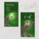 Elegant,whimsical red, fuchsia,violet.swirls,flourishes ,blossoms and blooms in Spring with a bright 3D emerald gem stone.Original watercolor painting and 3D graphics by Baldesign3D (c)..Easy to customize with your initials and own text as an all purpose business card just about any business you wish! .