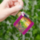 The key chain is made of metal and really sturdy. The flower design is really cheerful. The logo and colors are clear and crisp!