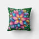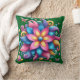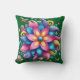 The image features a green throw pillow adorned with a vibrant floral design and butterflies. It serves as both a decorative cushion and a cozy accessory for any space. The colorful elements add a cheerful touch to the setting.