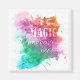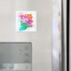 Colorful “Magic happens here” magnets.