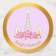 Beautiful magic moment unicorn table confetti in violet and yellow colors decorated with flowers and gold dots. Ideal for birthday, romantic dinner, engagement, anniversary, wedding, and any other magical celebration. Magic moment text can be personalized.