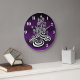 Magic Mushrooms optical design Wall Clock. Midnight purple with numbers.