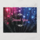 Pink, purple and blue neon glowing lights at the top of this thank you postcard give it a nightclub look to make a memorable Sweet 16 or other party thank you. Random lights sparkle around the black background and subtle grunge elements complete the funky look. Available with matching products.
