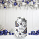 This can cooler wrap features a whimsical, seamless pattern of magical Christmas trees with a modern twist. Against a bright white background, the stylized trees sparkle in rich navy blue and gold, creating a sophisticated celestial holiday look. The festive design is complete with the handwritten phrase, "the Magic of Christmas," repeated throughout. Perfect for wrapping your cans for friends and family, this distinctive design is sure to stand out at any Christmas party and bring a touch of winter wonder to any canned drink.