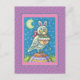 MAGIC OWL & EASTER BASKET, WHIMSICAL FOLK ART BIRD HOLIDAY POSTCARD