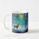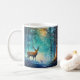 Immerse yourself in the magical tranquility of this enchanting winter forest. This whimsical artwork features a majestic stag standing under a gentle snowfall, surrounded by misty blue trees and a warm golden glow from the sun. Perfect for nature lovers and fantasy enthusiasts, this beautiful piece adds a touch of dreamlike wonder to any space. A stunning decorative item for your home or a unique gift.