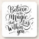 Inspirational coaster with the phrase "Believe in the magic that lies within you".