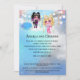 Two beautiful and magical angels - one good and one bad - are holding an ice cream cone and the cutest little unicorn handbags. They are standing against a heavenly blue cloud filled sky that has pink and gold glitter frosting strands and pretty faux sparkling string lights. The back has the same heavenly blue background and string lights plus the same two angels. These are ideal for magical, mythical, angel and demon theme parties.