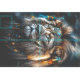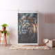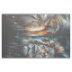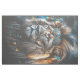 "Lion with beaded headband, colorful feathers, intricate mane, ornamental necklaces, cosmic background, mystical and majestic. 100% cotton fabric, thread count 210, width 56 inches, high-quality, smooth texture, durable, versatile for clothing and home decor.